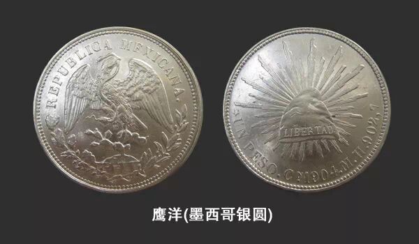 鹰洋,也称“蝙蝠”、“蝠洋”,墨西哥独立后自制的银圆,有一只展翅雄鹰图案,流行较广。