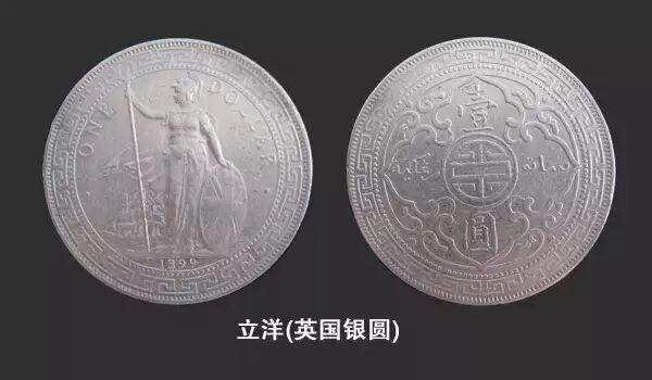 立洋,也称“站人洋”。英国银圆,图案是不列颠女神站立像。