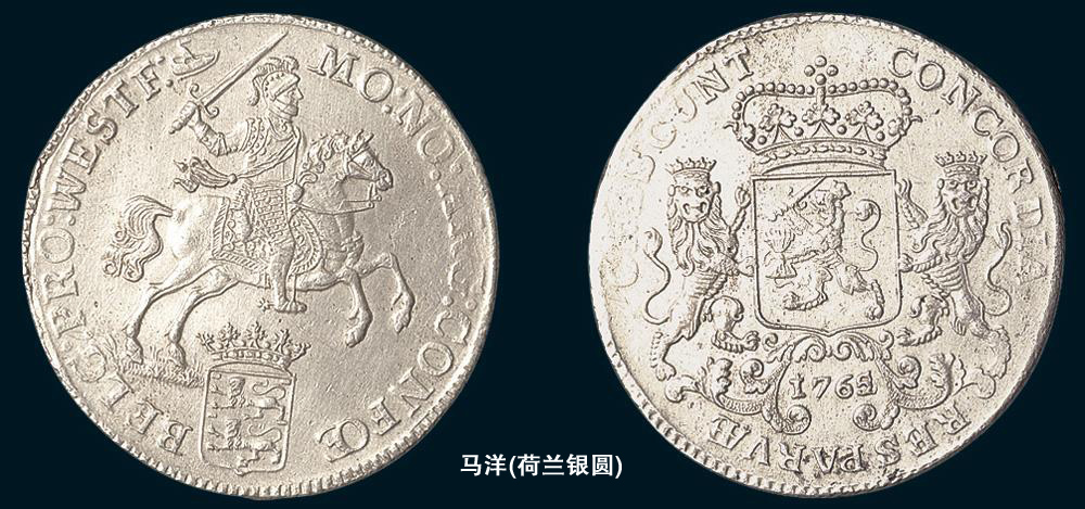 马洋,也称“马剑”、“剑洋”、“剑银”,荷兰、印度尼西亚银圆,上面有一持宝剑的骑士图案。亦有人认为“马剑”为英国五先令“克朗”,因为其背面图案为圣乔治屠龙与荷兰银币相似。