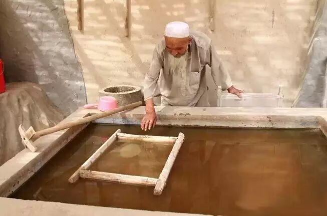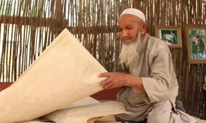 新疆和田地区手工制造桑皮纸的技艺,被称作人类造纸术中的活化石,据考证,它比东汉蔡伦的造纸术还早300年。