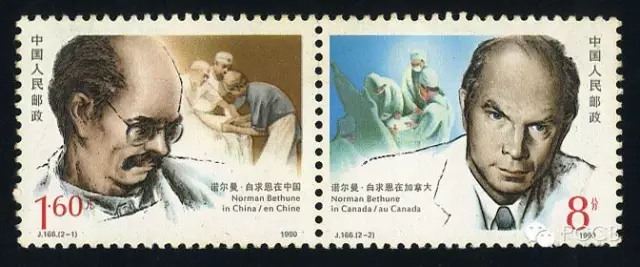 1990年发行J166《诺尔曼·白求恩诞生一百周年》1套2枚。这也是我国“JT”邮票板块中唯一一套与外国联合发行的邮票。