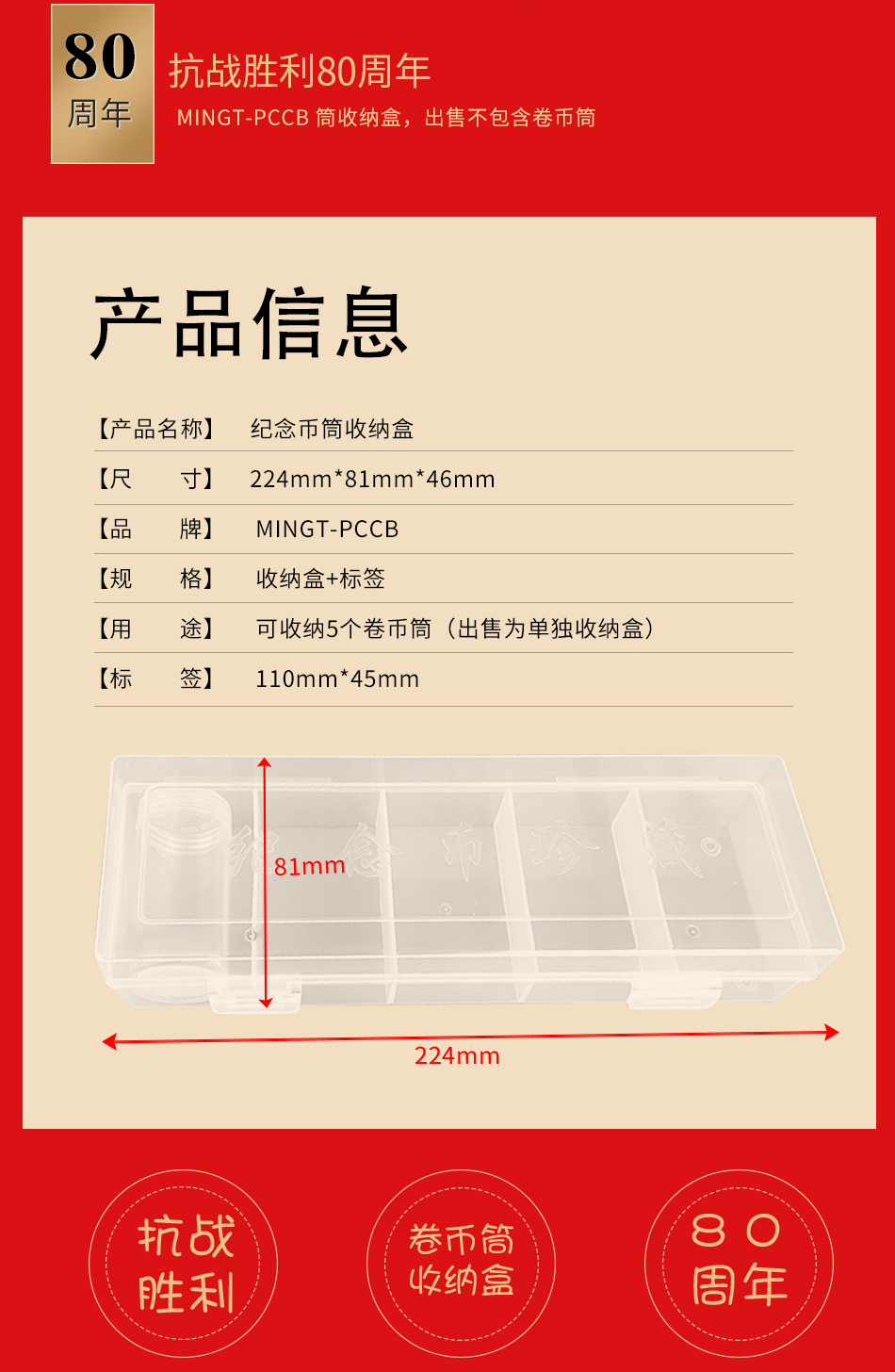 抗战暨世界反法西斯胜利80周年圆筒收纳盒(不含筒)
