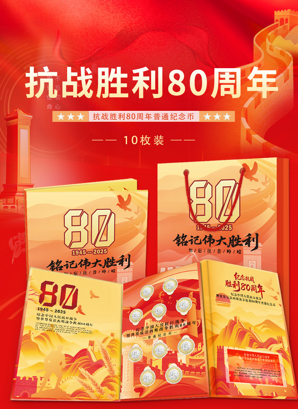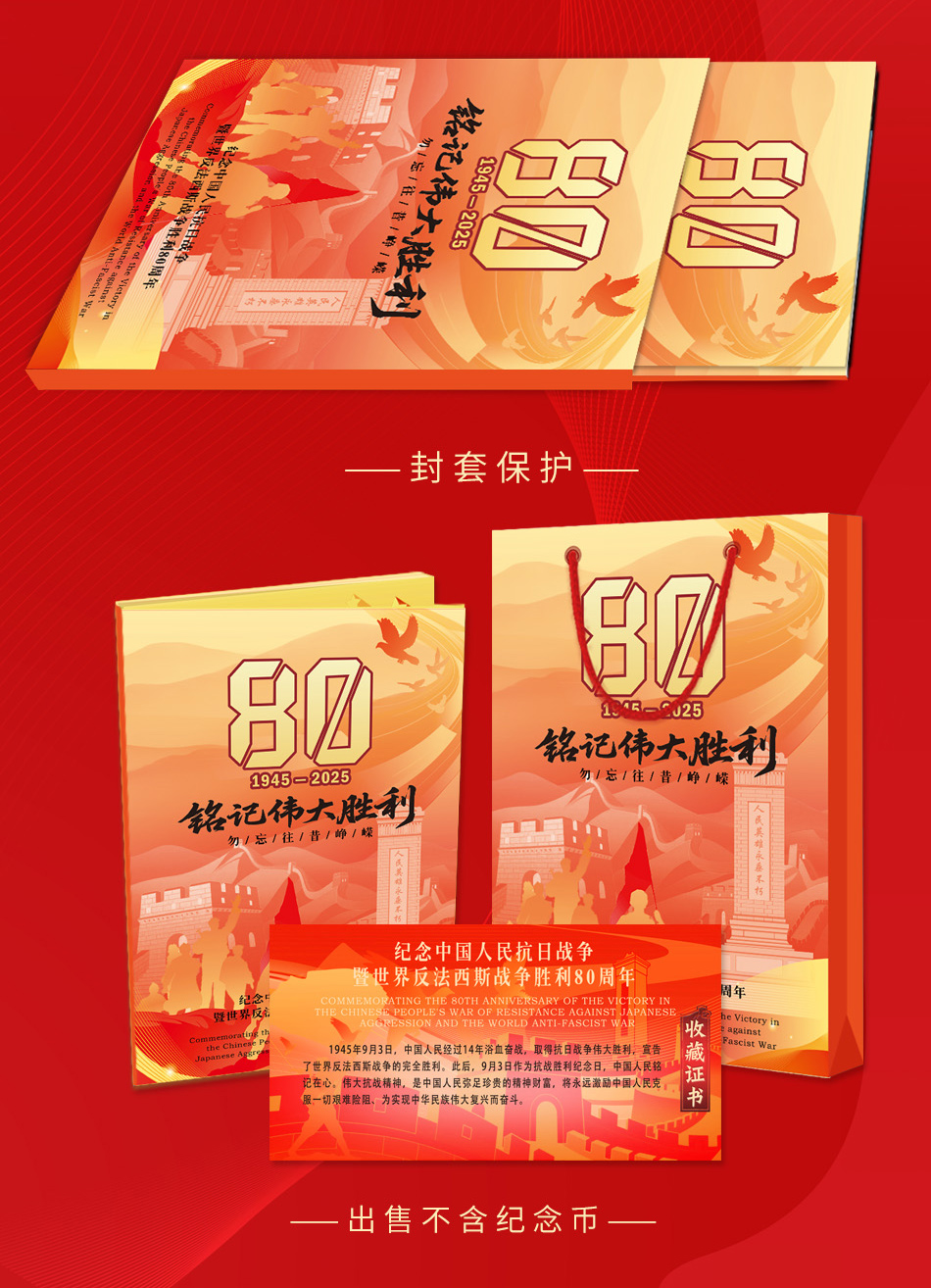 抗战暨世界反法西斯胜利80周年二代双枚套装盒(红衬)
