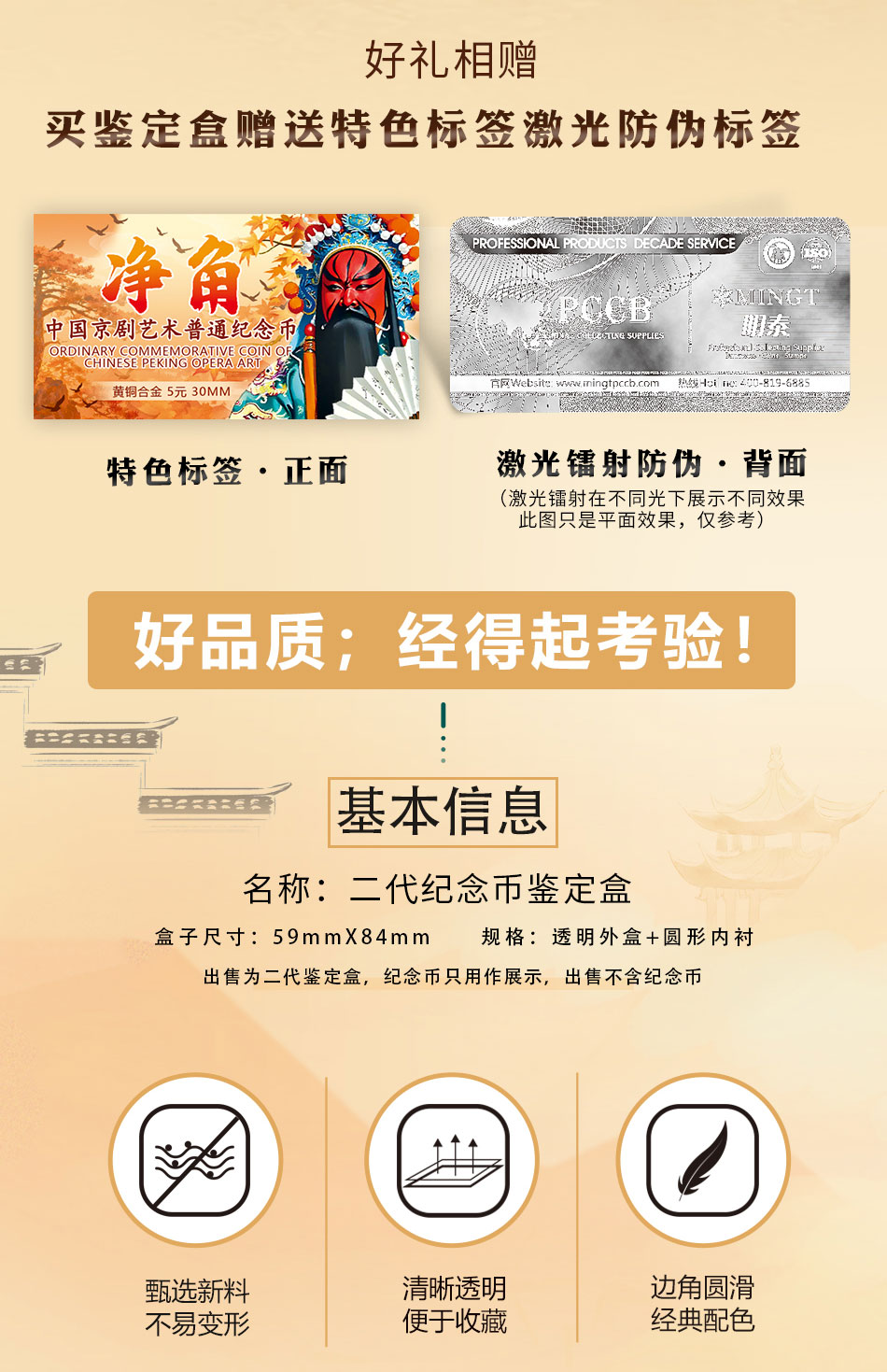 中国京剧艺术纪念币二代鉴定盒(白衬)