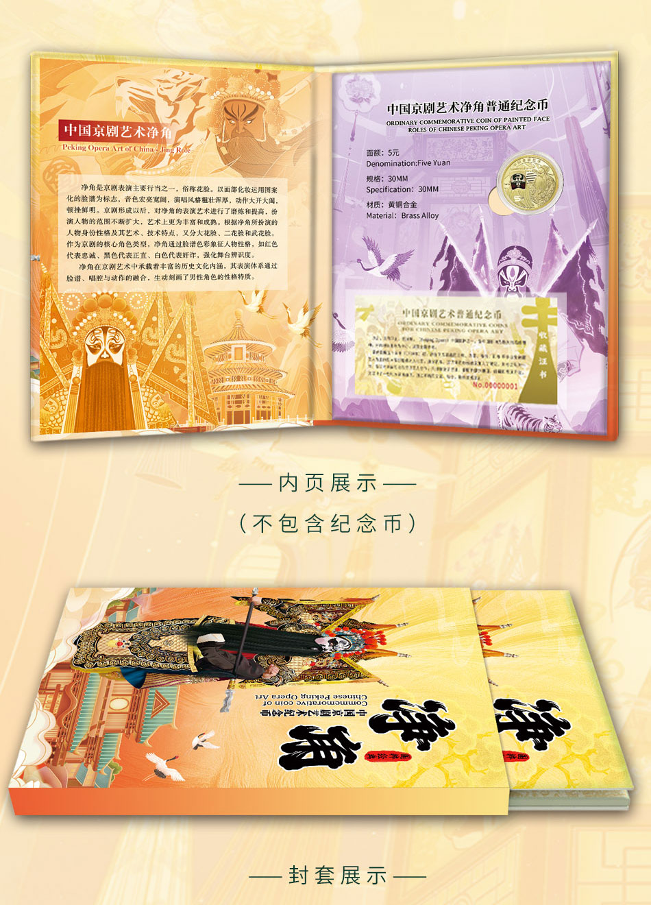中国京剧艺术纪念币二代鉴定盒双枚装(红衬)