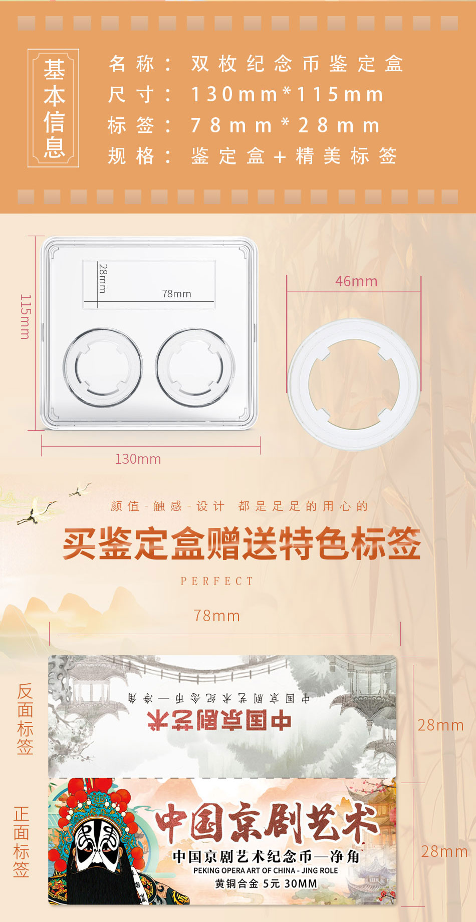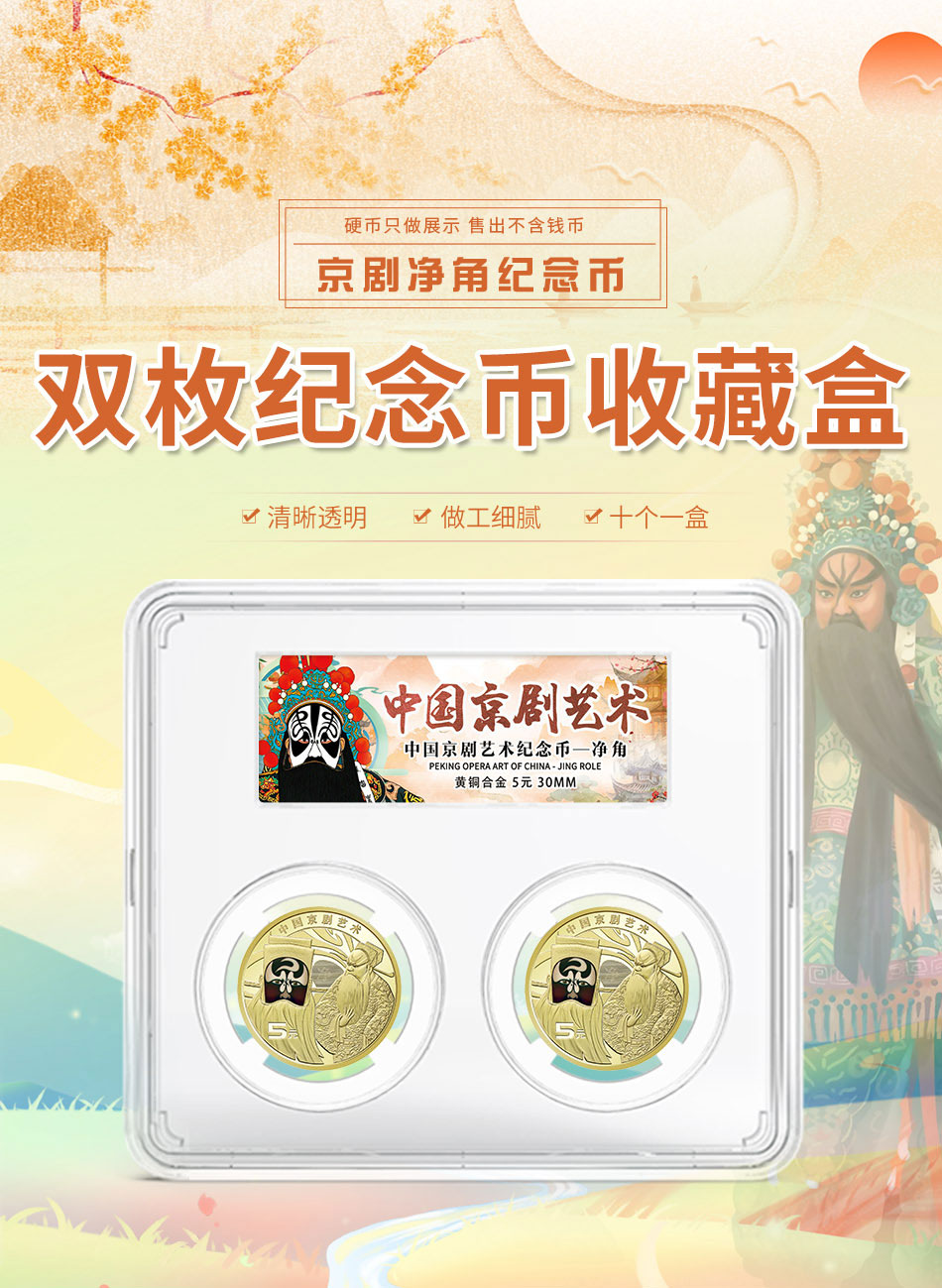 中国京剧艺术纪念币二代鉴定盒双枚装(白衬)