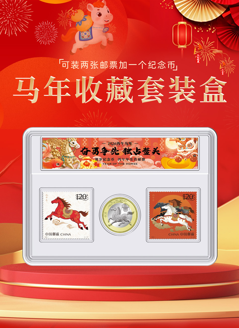 马年生肖币/邮-1币2邮盒(盒+标签+一马当先插套)不含币和邮