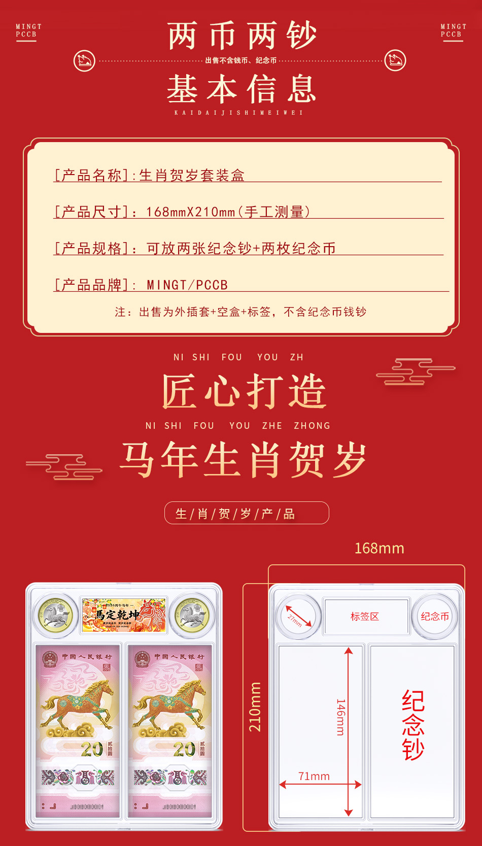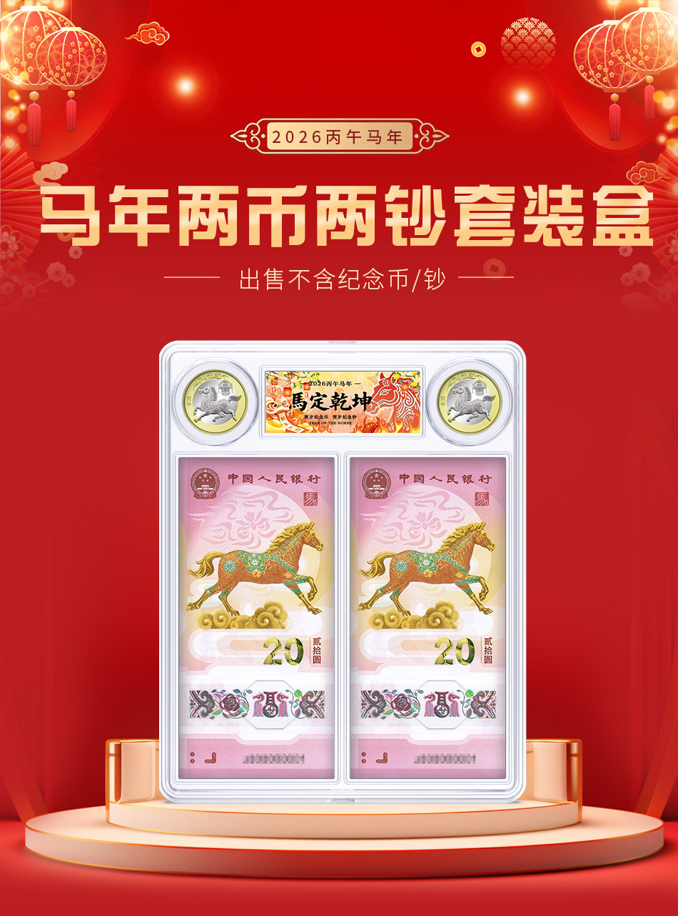 马年生肖币/钞-2币2钞盒(盒+标签+马定乾坤插套)不含币和钞