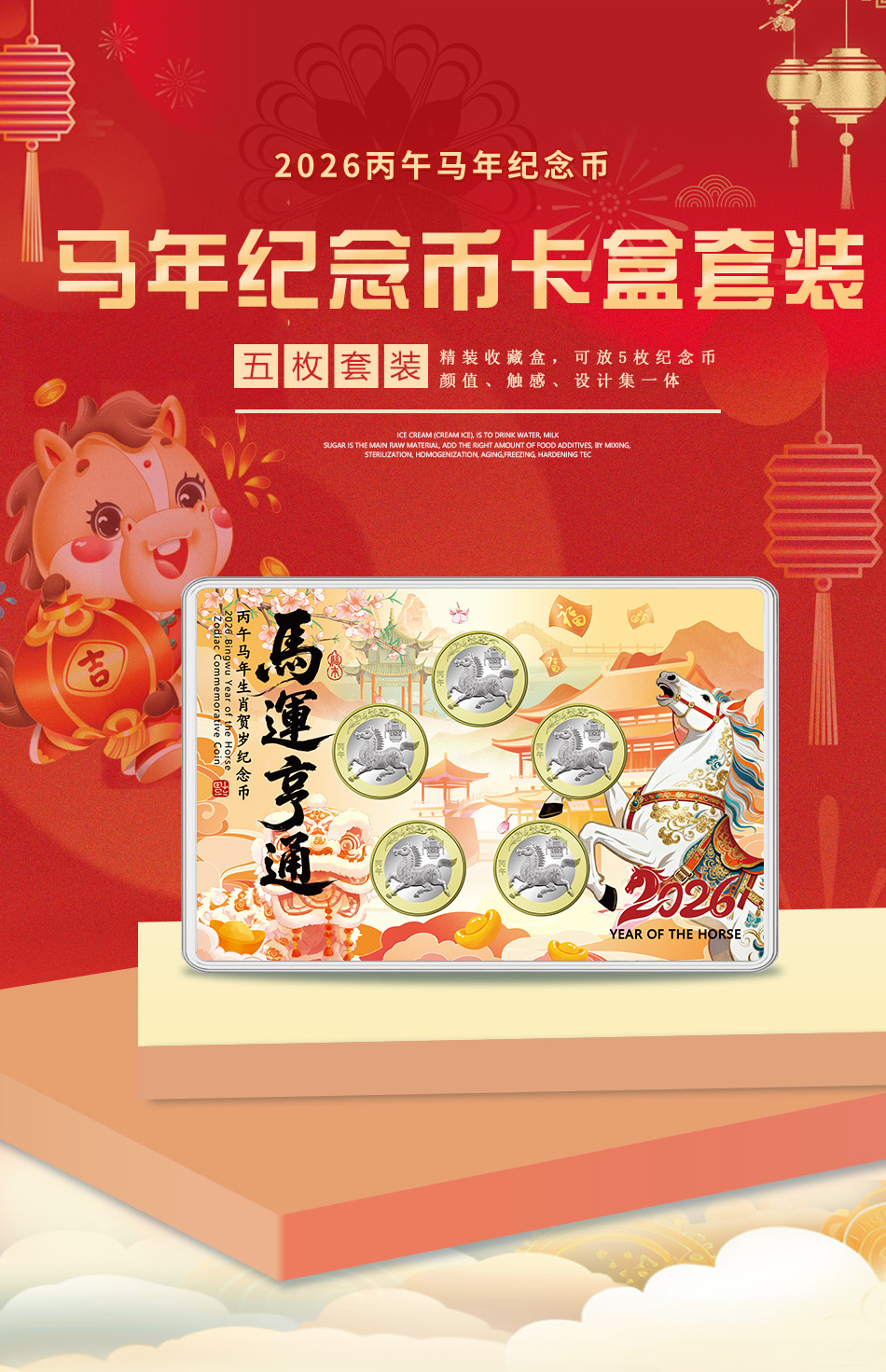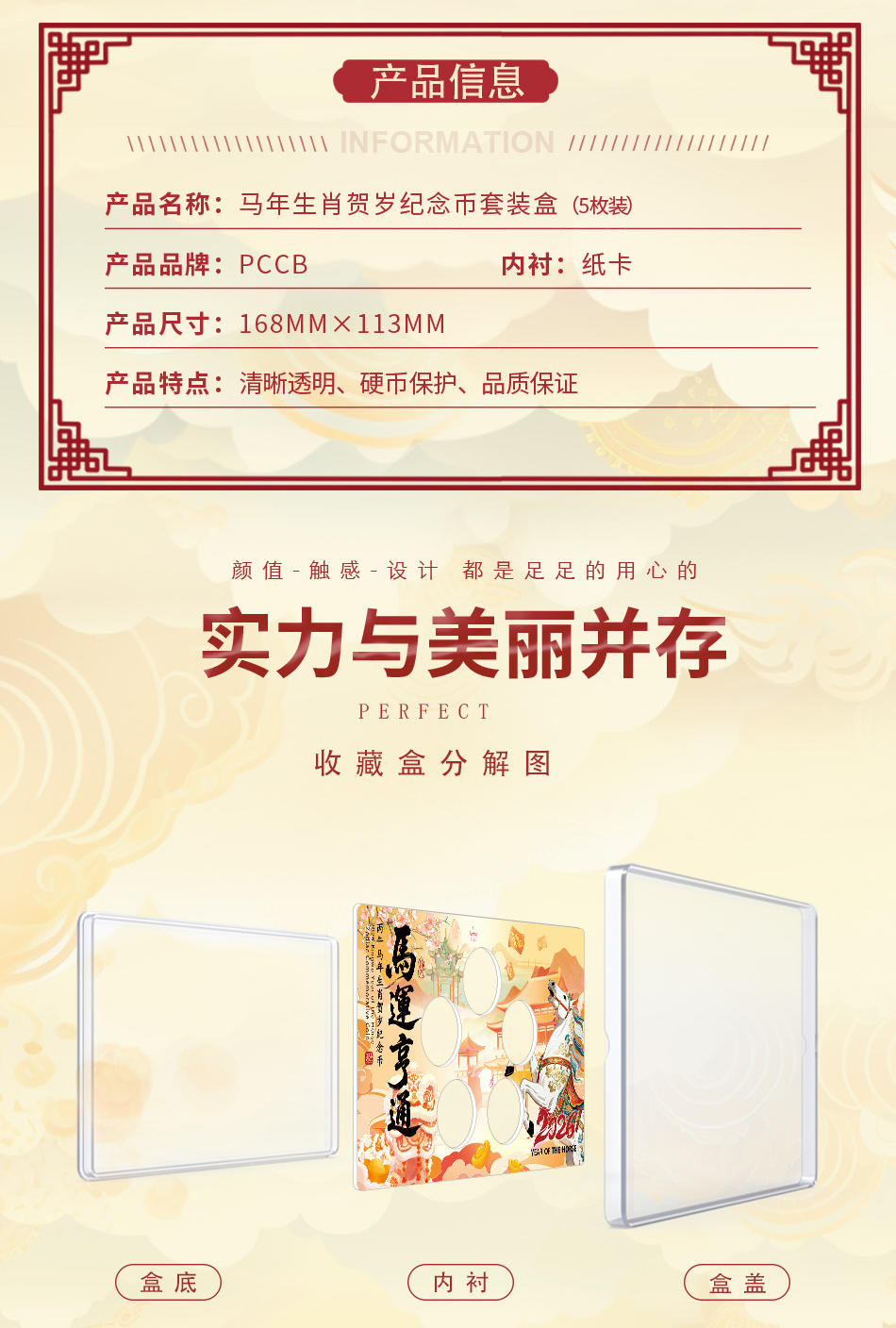 马年生肖纪念币五枚装彩绘套装盒(盒+马运亨通插套)不含币