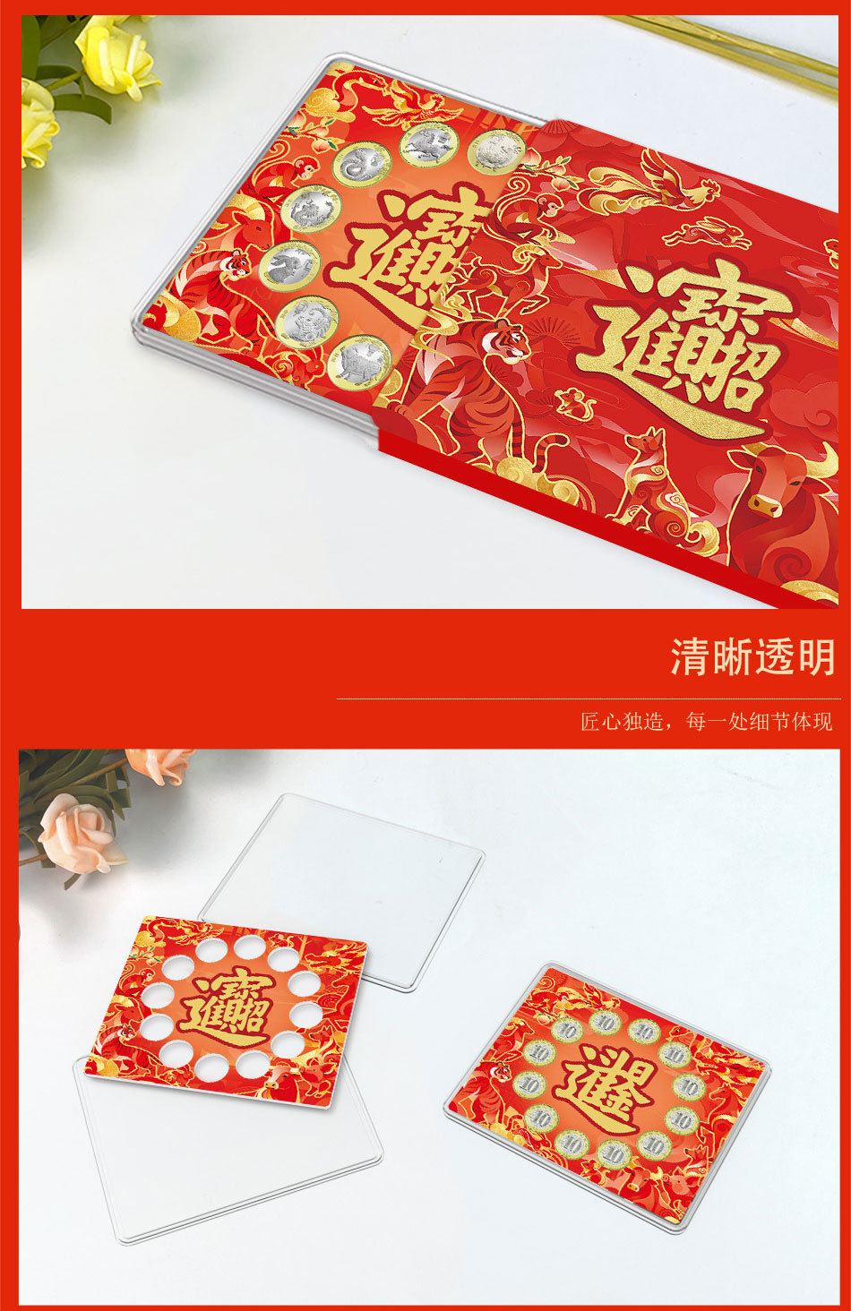 明泰(PCCB)第二轮十二生肖纪念币套装盒(红色EVA)