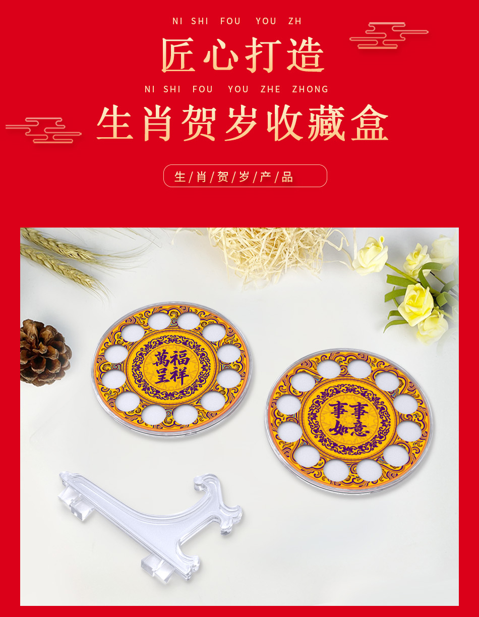 十二生肖纪念币圆盘套装(配支架)万福呈祥,不含币