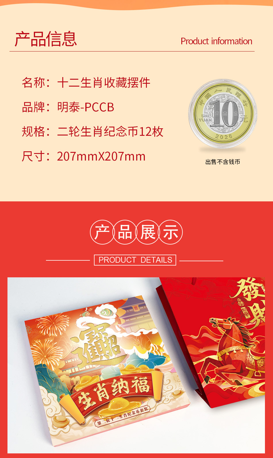 明泰(PCCB)第二轮十二生肖纪念币套装盒(红色EVA)