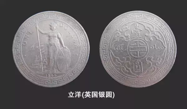 立洋,也称“站人洋”。英国银圆,图案是不列颠女神站立像。