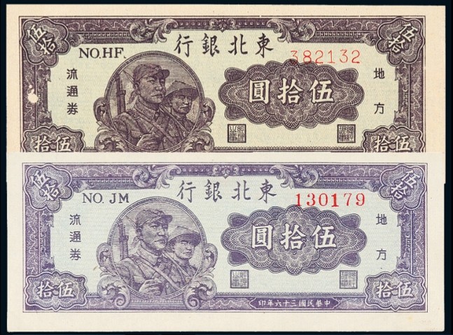 在第一版人民币颁行初期,大规模的解放战争仍在持续进行,全国财政尚无法完全统一。在这种特殊的历史条件下,中央政府同意各省或大区为顺应当地民情,制发使用一些区域性的货币来实行过度。其中较为主要的品种有,东北银行于1948-1950年间颁发的东北币,面值有250元、500元(两种)、5000元、10000元(四种)、50000元、100000元等;内蒙银行1947年发行的200元、500元,内蒙古人民银行于1948年制发的100元、200元、500元、2,000元、10,000元和50,000元等;中国人民银行江西省分行于1949年3月发行的"临时流通券",面值有5元、10元和20元三种;南方人民银行于1949年7月发行的货币,面值有1角(两种)、2角、5角(两种)、1元、5元、10元,其中还有加盖"闽粤赣边区银行"者),还有新疆省于1950年发行的银圆券1元等。此外,东北行政委员会还在1948年发行过专用的"军用购粮券",面值为(东北币)1500元和5000元(该票目前已甚为稀见),以及冶总供销总社于1949年发行的500元和1000元等。