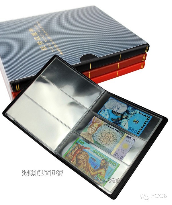 附:PCCB皮革缝线3行透明纸币收藏册(可放置各类纸钞)
