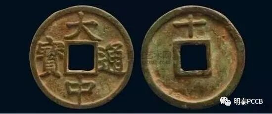 元楷书“大中通宝”钱。元末朱元璋为吴王时所铸,钱文端庄