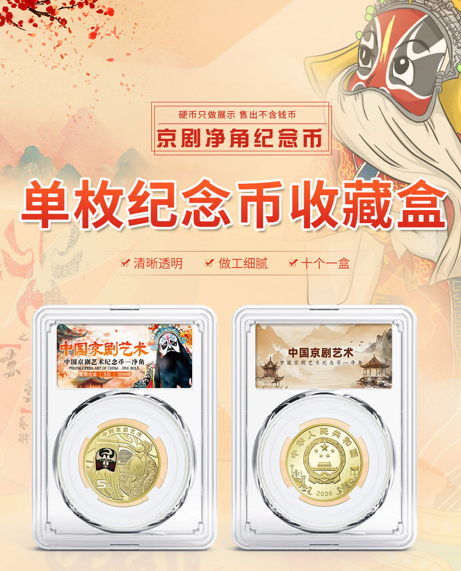 中国京剧艺术纪念币二代鉴定盒双枚装(红衬)