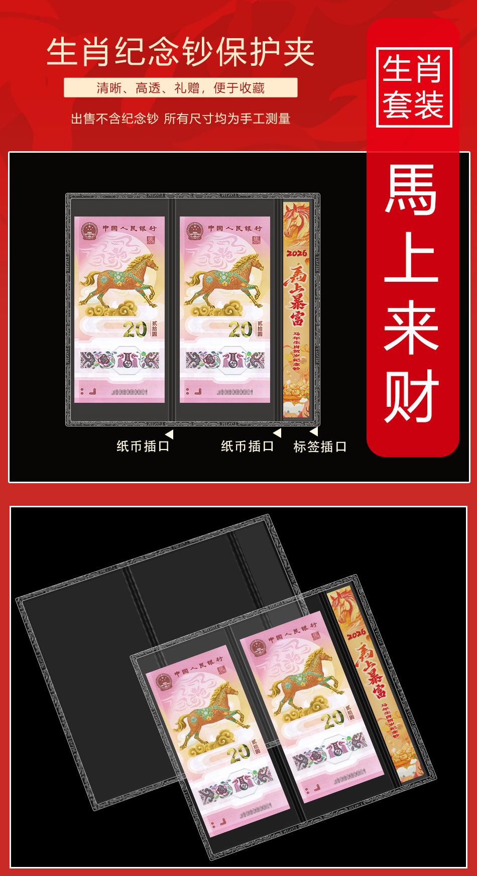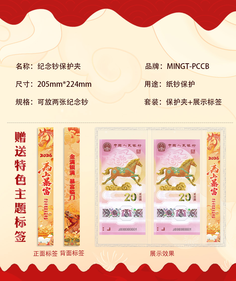 马年生肖钞双联标签式保护夹(双枚)