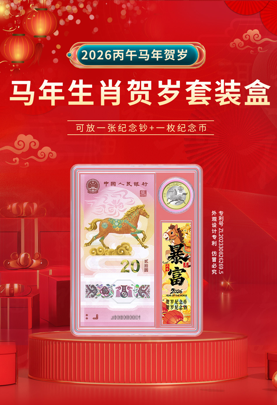 马年生肖币/钞-1币1钞盒(盒+标签+立马暴富插套)不含币和钞