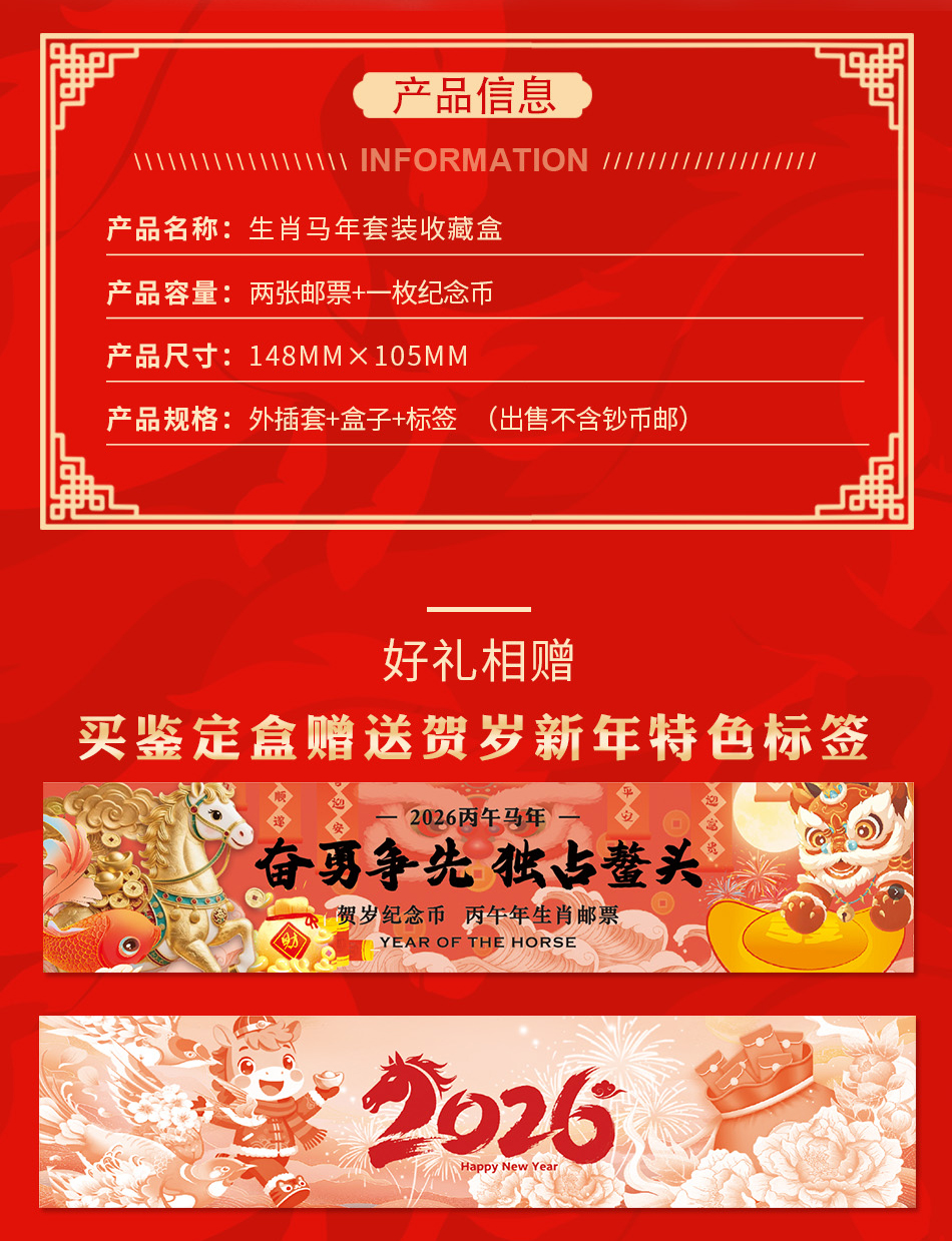 马年生肖币/邮-1币2邮盒(盒+标签+一马当先插套)不含币和邮