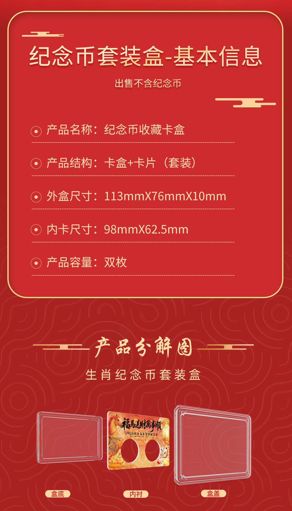 马年生肖纪念币精装纪念卡盒(双枚装)不含币