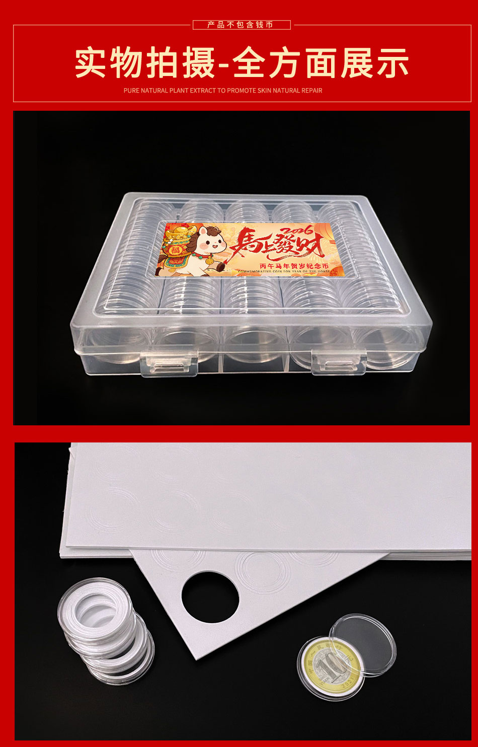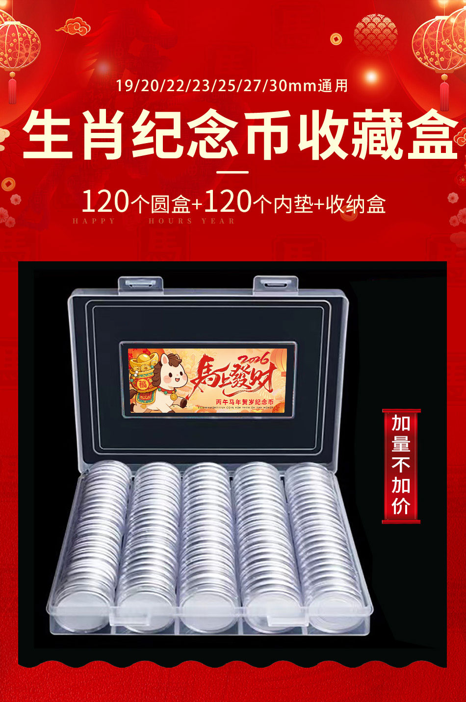 马年生肖币120枚活圈圆盒+1收纳盒套装,不含币