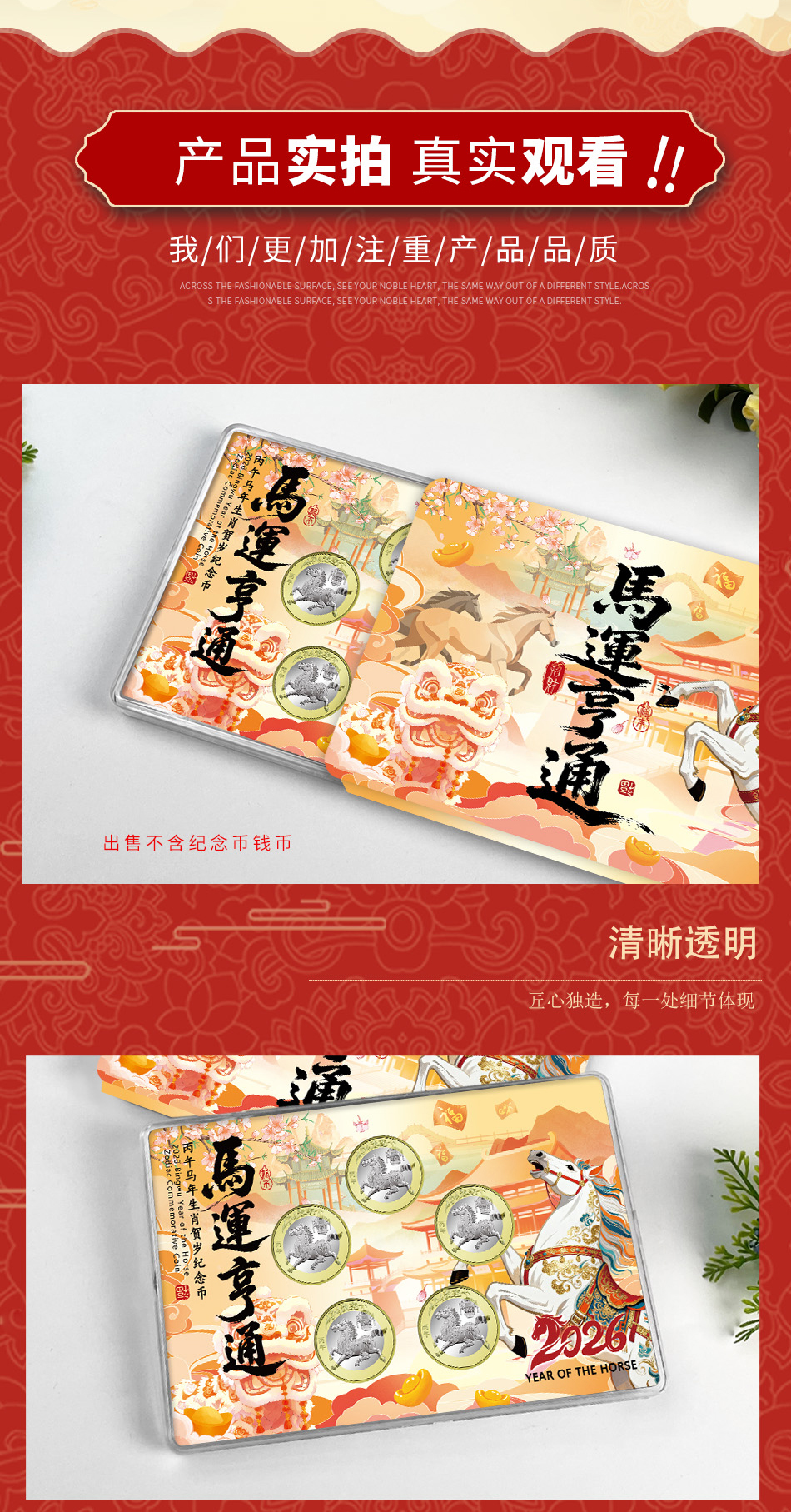 马年生肖纪念币五枚装彩绘套装盒(盒+马运亨通插套)不含币