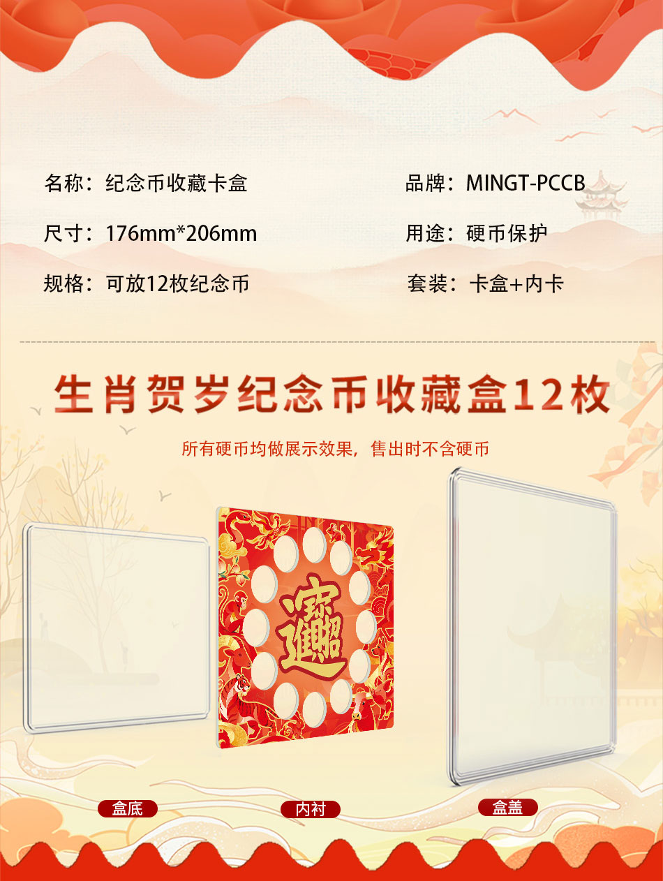 明泰(PCCB)第二轮十二生肖纪念币套装盒(红色EVA)