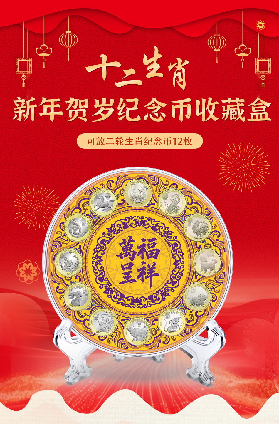 十二生肖纪念币圆盘套装(配支架)万福呈祥,不含币