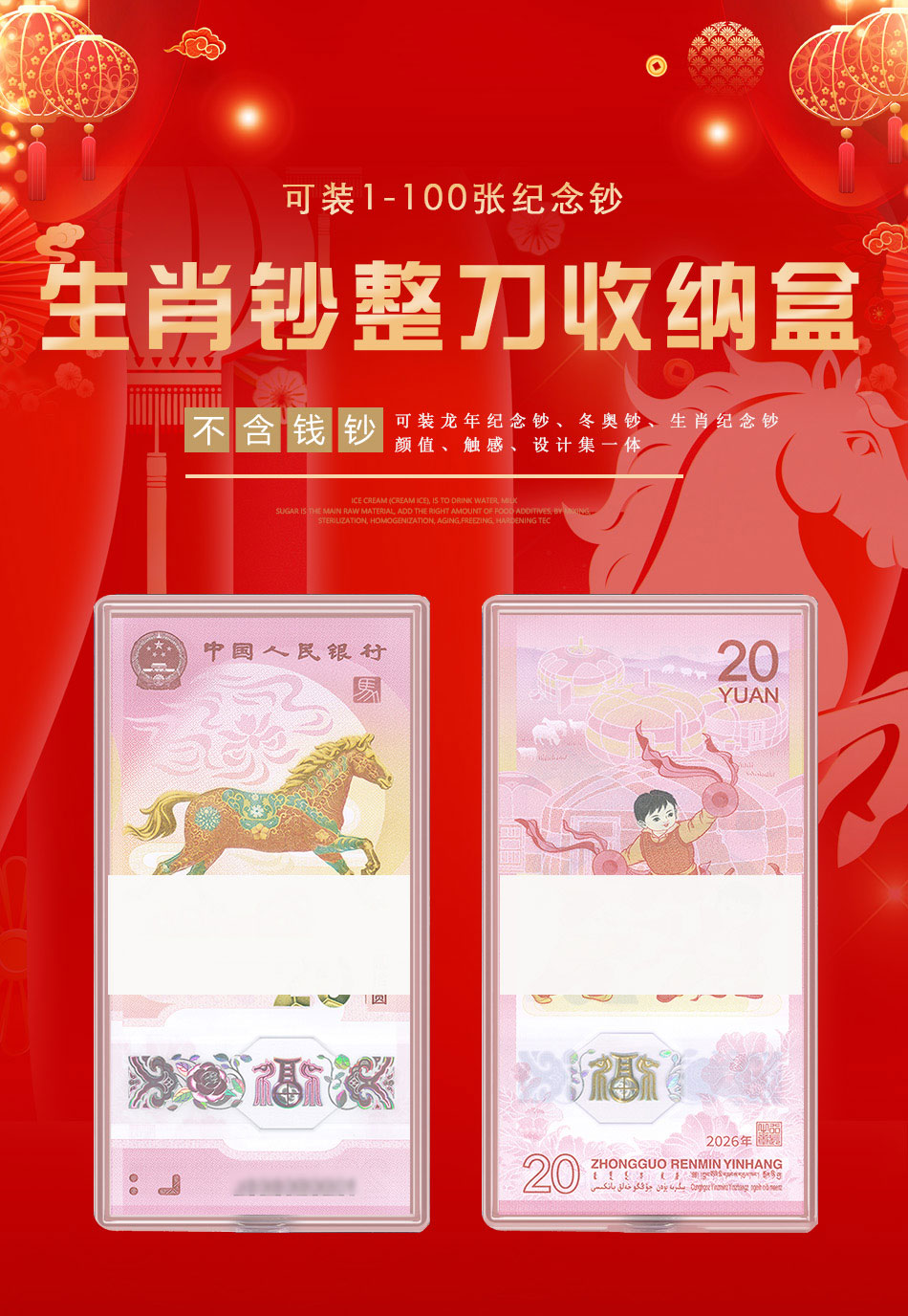 马年生肖纪念钞整刀收藏盒(100枚装)生肖纳福,不含钞